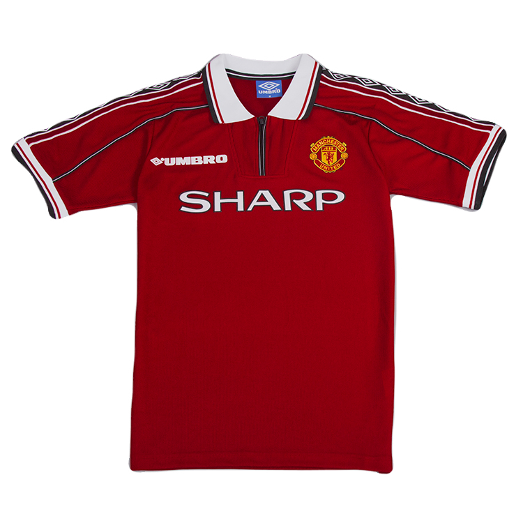 Camiseta Manchester United 1998. Leyendas como Beckham, Cole, Sheringham, Neville o Solskjaer vistieron esta preciosa camiseta.